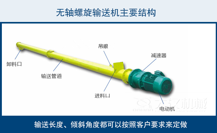 驅(qū)動(dòng)、殼體、襯板、葉片、 支架、蓋板、進(jìn)料口、出料口,輸送長(zhǎng)度、傾斜角度都可以按照客戶要求來(lái)定做,不同物料不同輸送角度我們?yōu)槟侠磉x型!