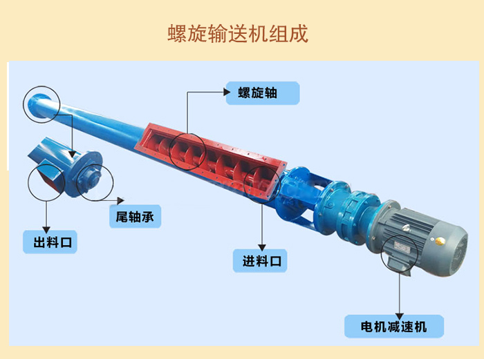 螺旋機本體由頭部軸承、尾部軸承、懸掛軸承、螺旋、機殼、蓋板及底座等組成。