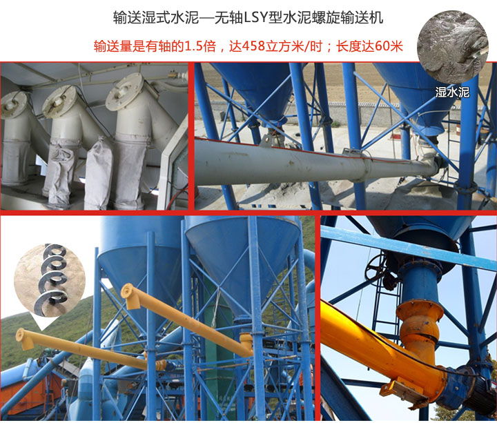 潮濕的水泥含水量偏大,且易粘黏,選擇無軸式水泥螺旋輸送機(jī),采用無螺旋軸,只含螺旋葉片的設(shè)計(jì)理念,可避免輸送中物料堵塞,卡料等現(xiàn)像;而且無軸設(shè)計(jì)其輸送量是有軸的1.5倍,高達(dá)458立方米/時(shí);長(zhǎng)度達(dá)60米,可多級(jí)串聯(lián),遠(yuǎn)距離輸送物料。